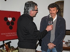Hotel Milleluci Nell'ambito della degustazione dei vini rossi valdostani di eccellenza, promossa dall'Associazione Viticulteurs Encaveurs, è stato presentato il libro Vina Excellentia di Giulio Moriondo, da poco dato alle stampe. Sono intervenuti Vincent Grosjean, Andrea Barmaz, Augusto Rollandin, Giuseppe Isabellon. Il dottor José Vouillamoz, ospite d'onore, ha concluso la presentazione con una relazione sulle "Parentele genetiche dei principali vitigni autoctoni della Valle d'Aosta" |